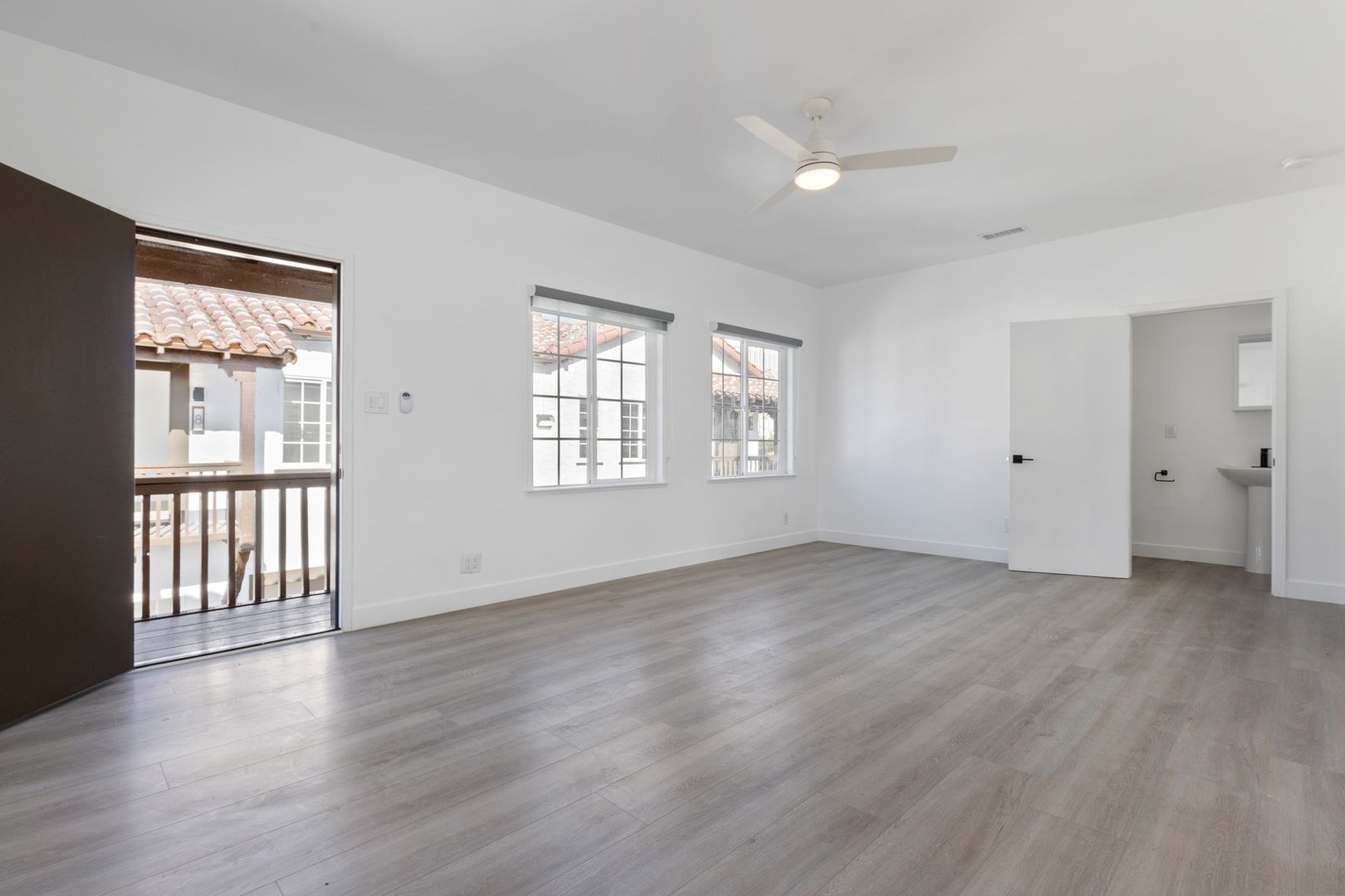 Inspired by Mediterranean and Spanish Revival-style architecture and enhanced by deep red tones and polished wood textures that contrast with stark white walls, these classic restored Santa Barbara-style rental homes are just minutes to thriving Downtown Santa Ana. 1524-1530 North Sycamore Street, located in the heart of Santa Ana’s historic Willard neighborhood, features two side by side, four-unit, two-story low-rise buildings with Santa Barba style architecture. This charming, gated community features a calming water fountain in the courtyard, private entryways, balconies, red tile roofs, and remote-controlled garage parking.