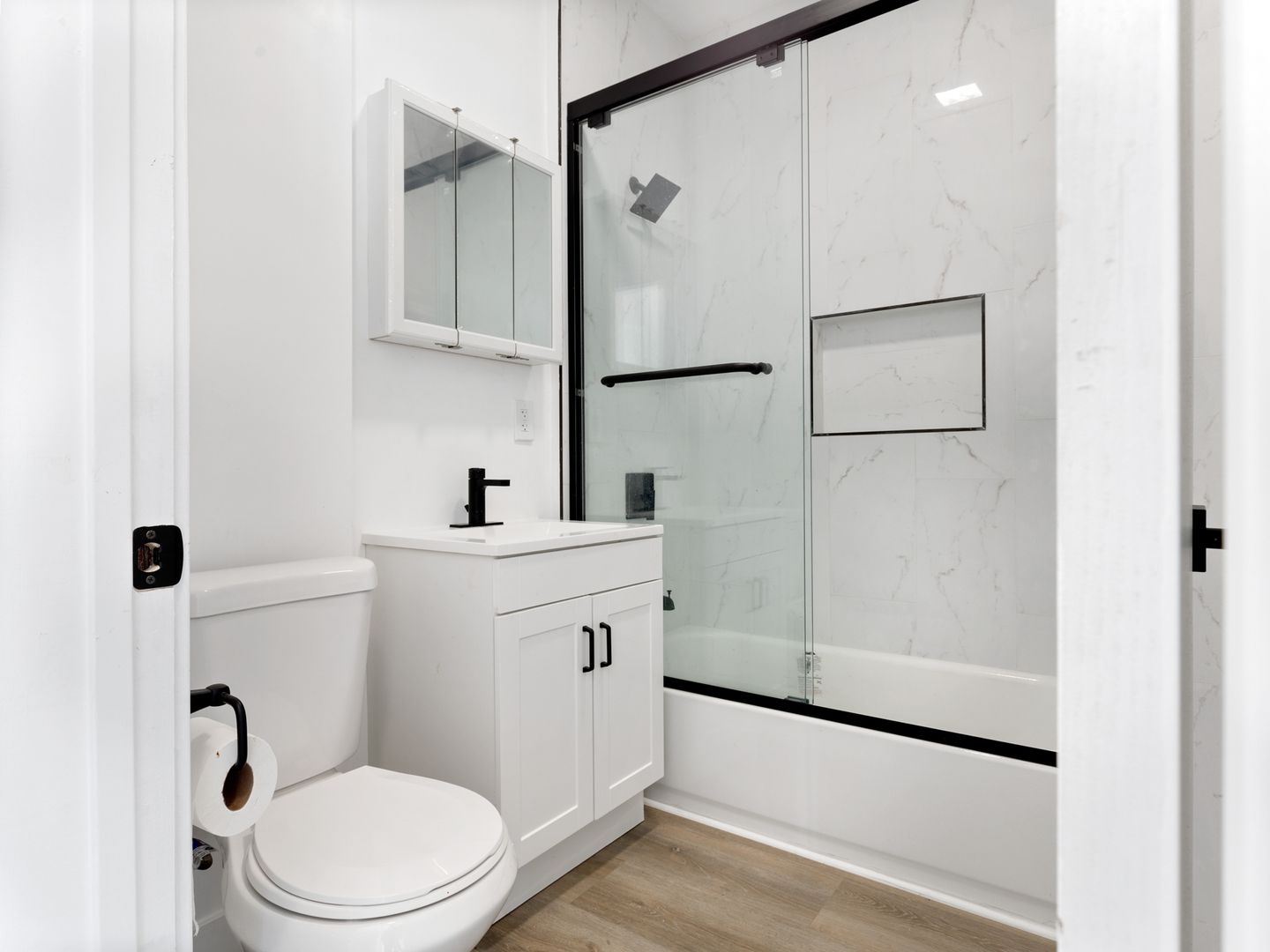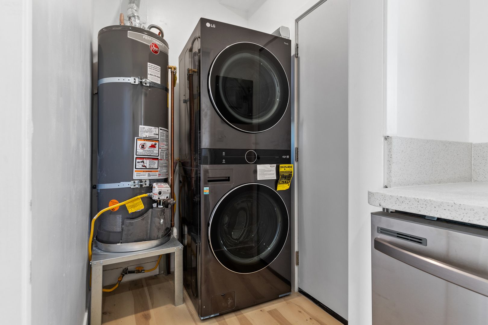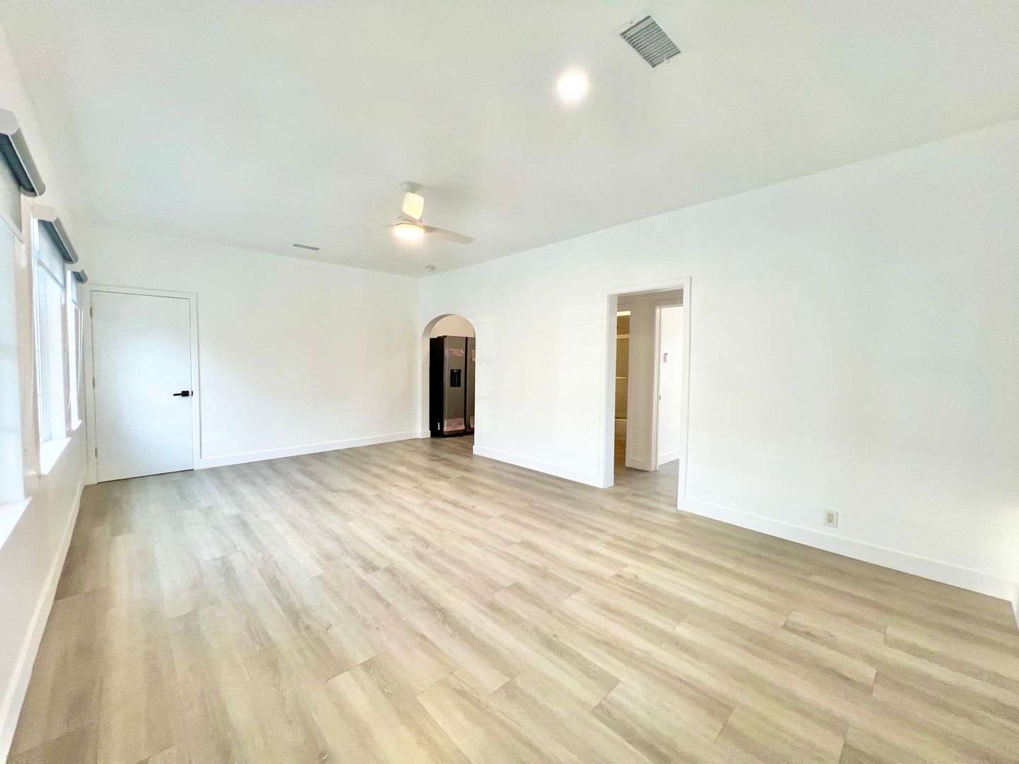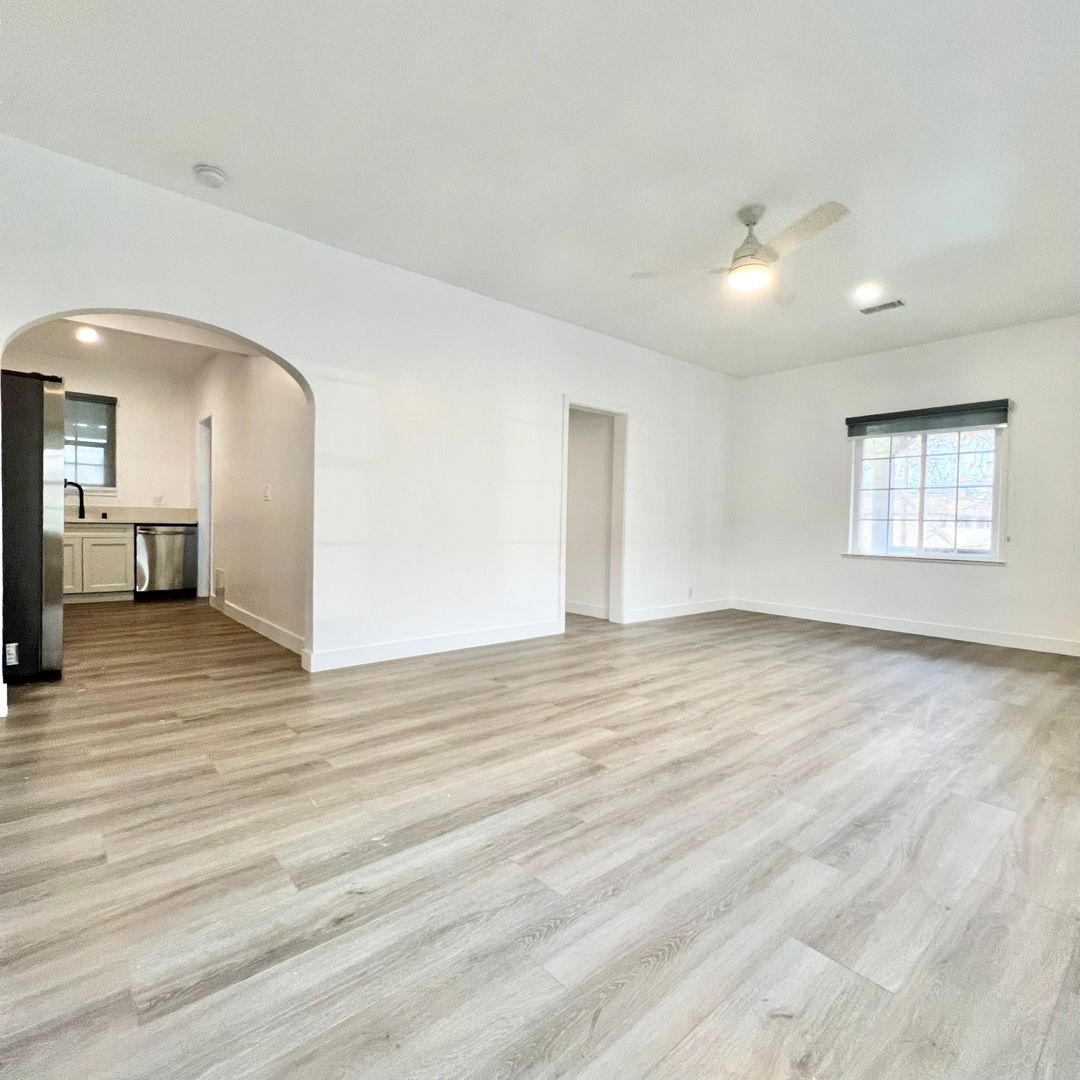 Carefully restored and designed by a renowned LA designer, these 1920s vintage luxury rental homes feature keyless entry door locks to spacious one bedroom and two-bedroom floor plans with arched entry ways to newly renovated kitchen and bathrooms. The kitchen boasts sparkling white stone quartz countertops with brand new self-closing cabinetry and high-end Samsung stainless-steel refrigerators with matching gas cooktop with oven and microwave. Stacked washer and dryers included inside each rental home with porcelain tiled bath tubs, and glass shower doors and separate guest bathrooms. Each rental homes also includes central A/C cooling and heating with recessed lights with luxury style remote control blinds and distressed wood plank floors.