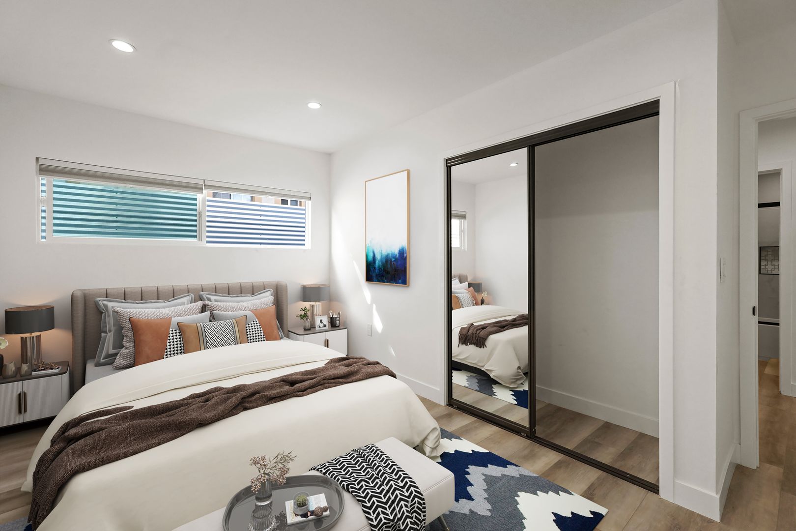 Carefully restored and designed by a renowned LA designer, these 1960s modern luxury rental homes feature keyless entry door locks to spacious one-, two- and three-bedroom floor plans with newly renovated kitchen and bathrooms. The kitchen boasts sparkling white stone quartz countertops with brand new self-closing cabinetry and high-end stainless-steel refrigerators with matching gas cooktop with oven and microwave. iRing doorbells with a smart home video security camera are also included as well as a stackable washer and dryer for selected units only. Bathrooms feature porcelain tiled bath tubs and glass shower doors. Each rental home also includes central A/C cooling and heating with recessed lights with luxury style cellular shade window blinds and distressed wood plank floors.