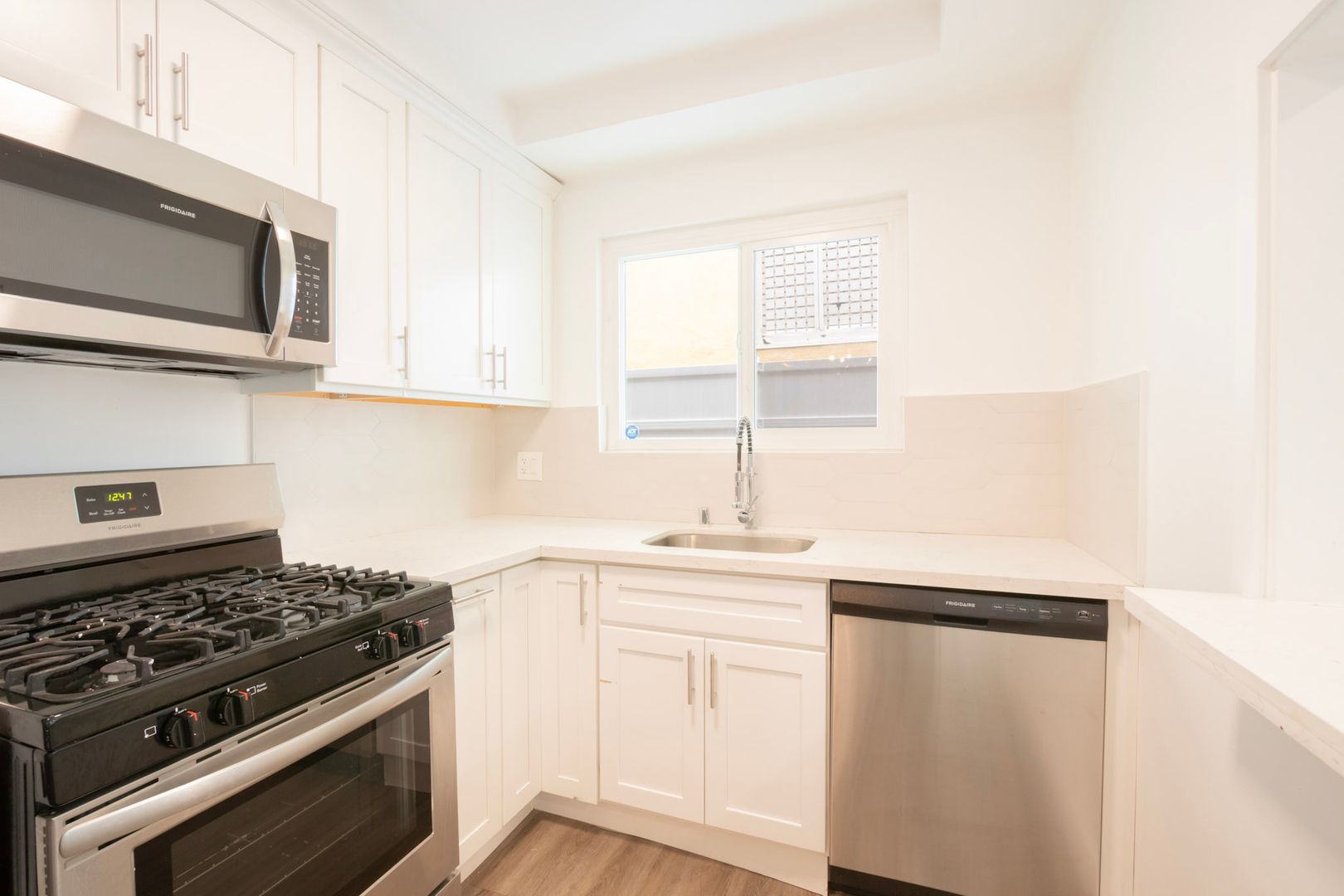 Inside, you’ll find a spacious, open layout with updated flooring, lighting, and abundant natural light throughout. The gourmet kitchen features brand new stainless steel appliances, quartz countertops, and sleek contemporary cabinetry—ideal for both everyday living and entertaining. Both bedrooms are generously sized, and the bathrooms have been fully updated with modern tilework, vanities, and fixtures.