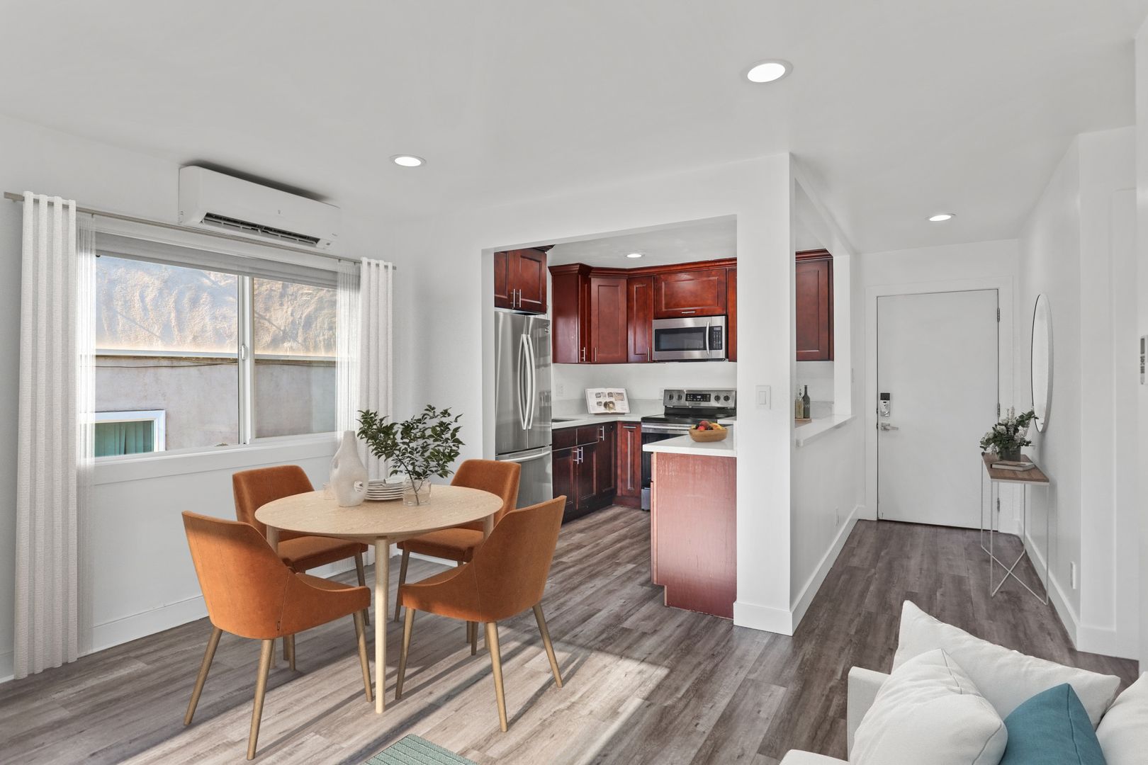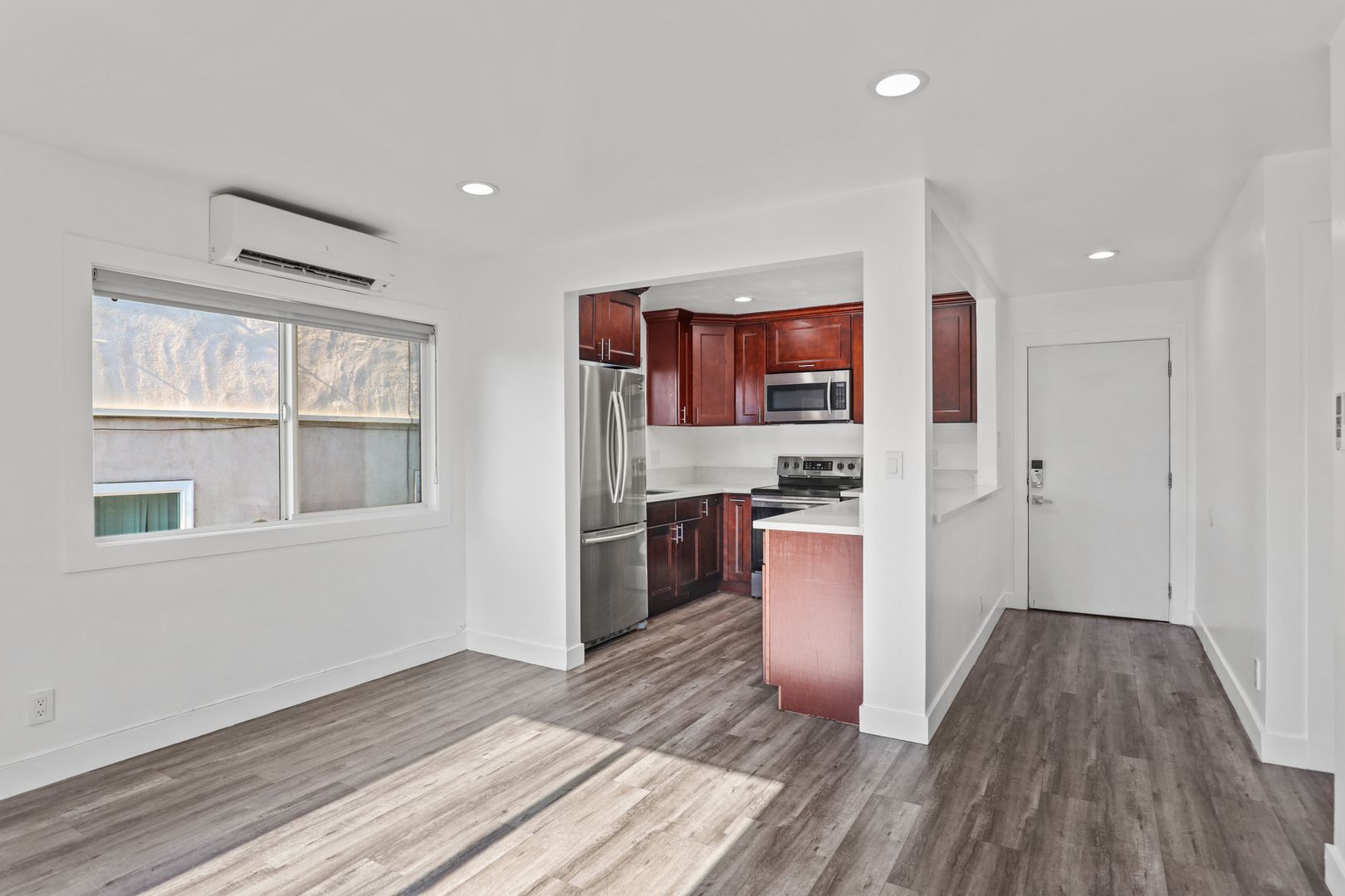 Carefully restored and designed by a renowned LA designer, these modern themed rental homes feature keyless entry door locks to spacious one bedroom and two-bedroom floor plans with newly renovated kitchen and bathrooms. The kitchen boasts sparkling white stone quartz countertops with brand new self-closing cabinetry and stainless-steel refrigerators with matching gas cooktop with oven and microwave. Stacked washer and dryers included inside each rental home with porcelain tiled bath tubs, oversized vanity mirror, and glass shower doors and some with separate guest bathrooms. Each rental homes also includes central A/C cooling, heating with recessed lights with distressed wood plank floors, and cellular shade window blinds.