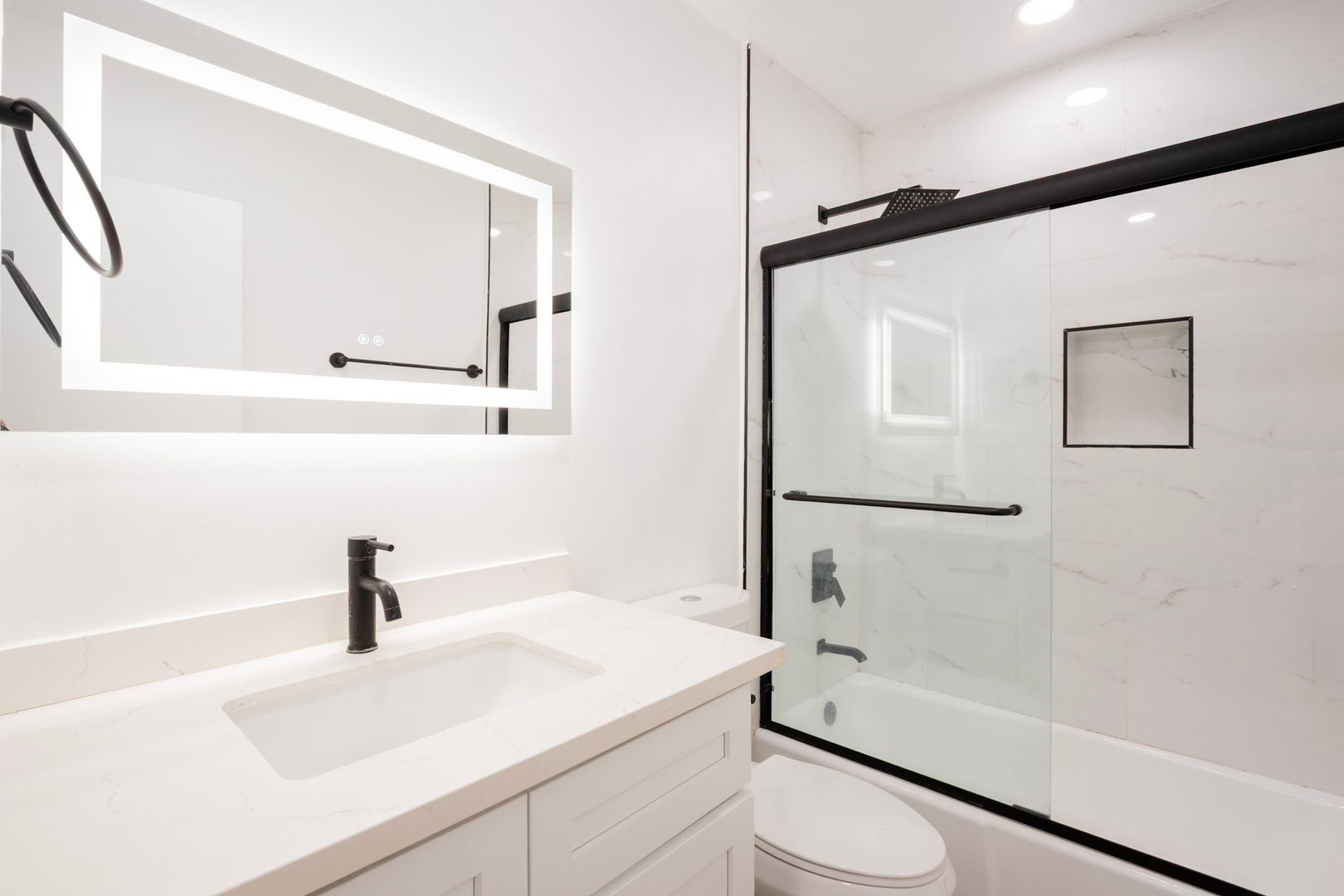 Each bedroom offers generous proportions and privacy, making it ideal for roommates, a small family, or a comfortable work-from-home setup. Bathrooms feature updated tilework, modern vanities, and designer fixtures.
