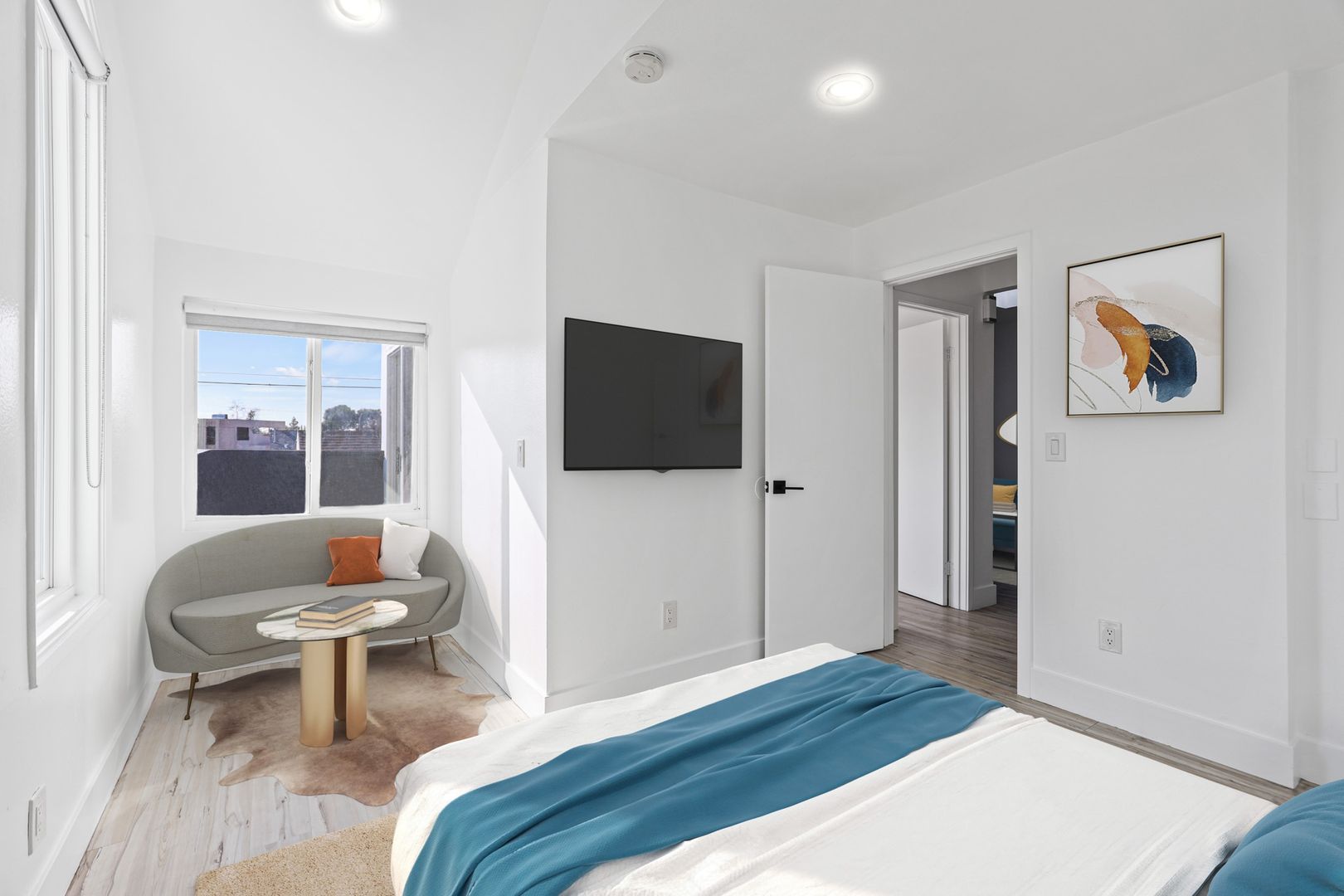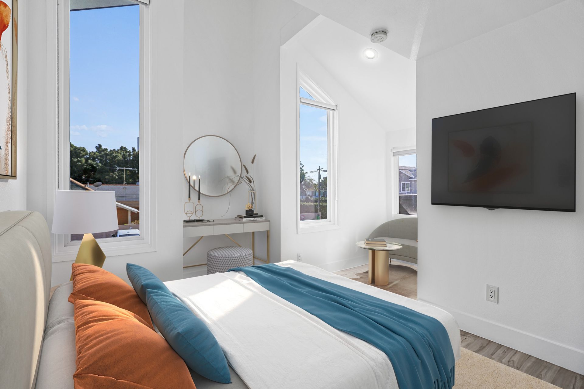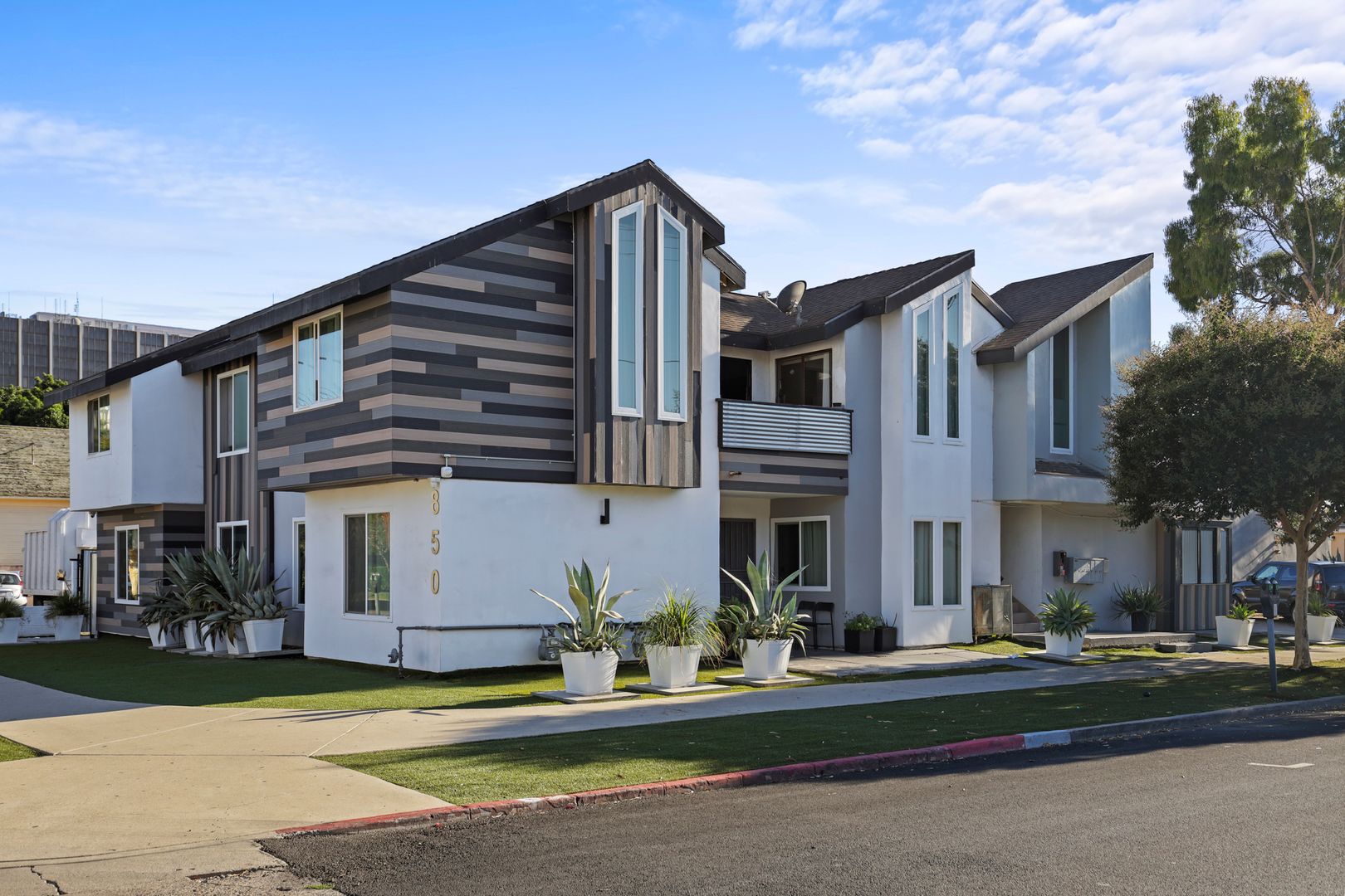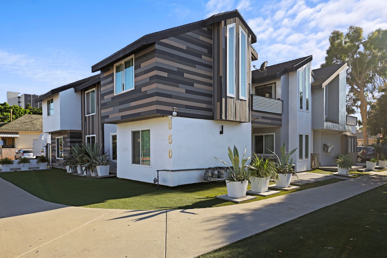 Inspired by modern architecture and enhanced by gray and brown tones and polished wood textures that contrast with stark white walls, these modern-style rental homes are just a block to thriving Downtown Santa Ana. 850 N Van Ness Avenue, located in the heart of Santa Ana’s historic Willard neighborhood, features a six-unit, two-story low-rise multifamily community. This charming community features private entryways, balconies, pitched roofs with vaulted ceilings, and remote-controlled garage parking.