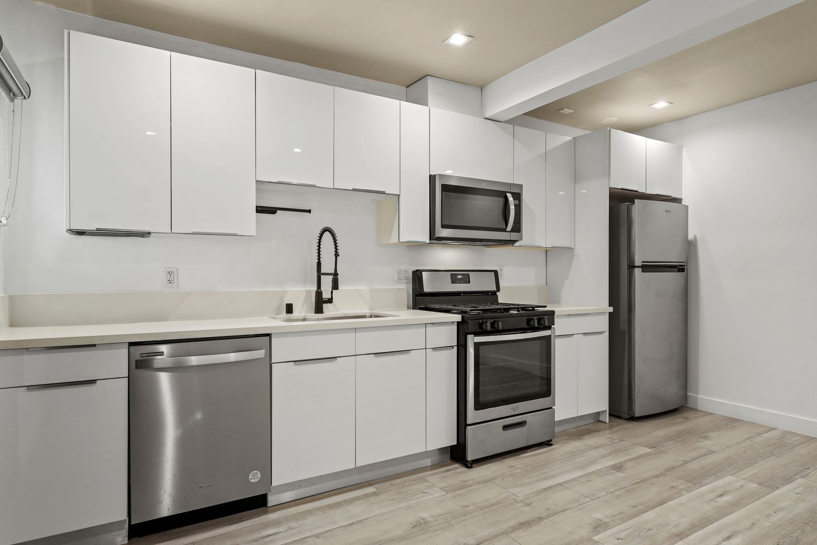 | KITCHEN | - Modern Designer Cabinetry - Quartz Countertops - Stainless-Steel Appliances - Refrigerator - Range w/ Oven - Microwave - Open Kitchen Space Layout