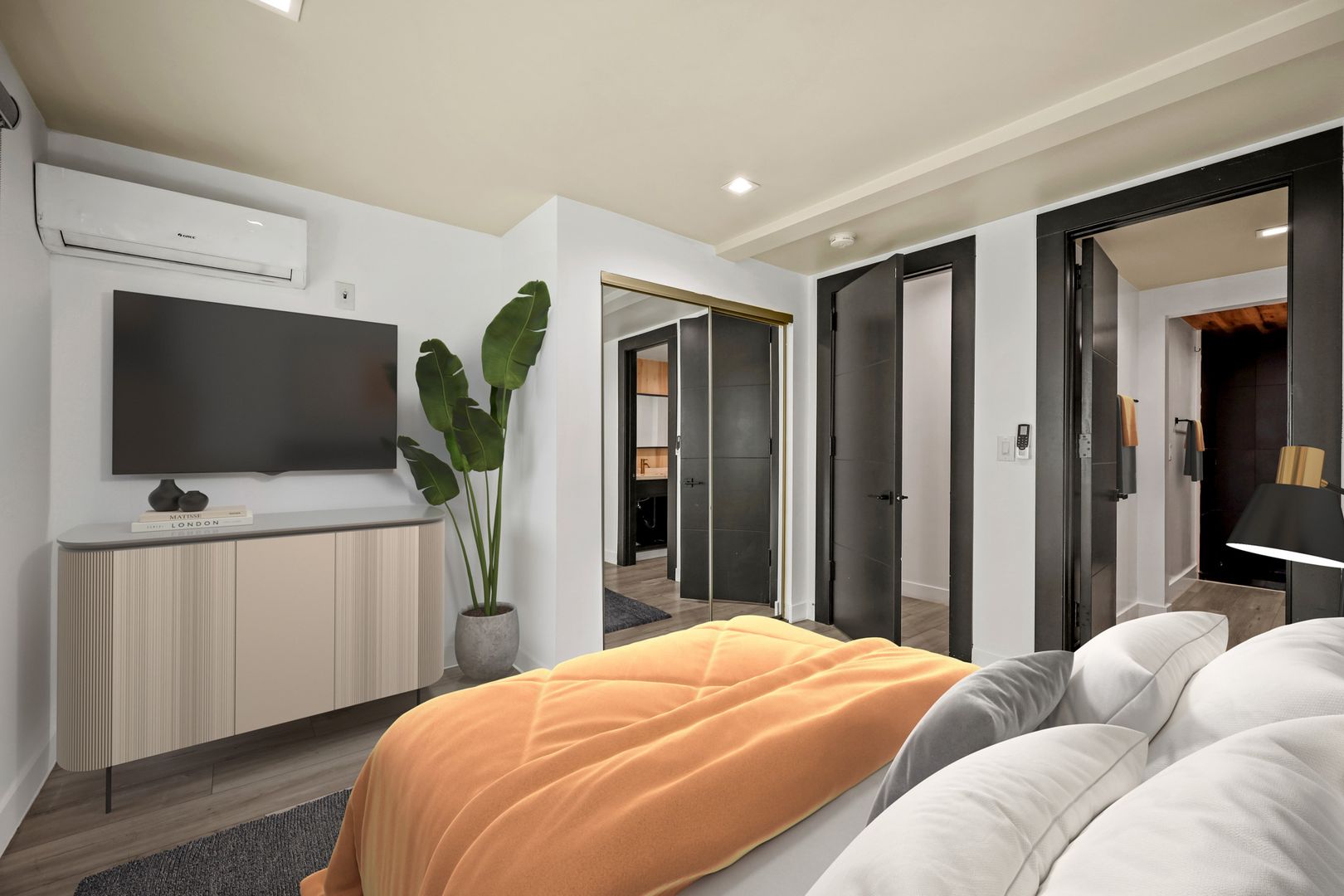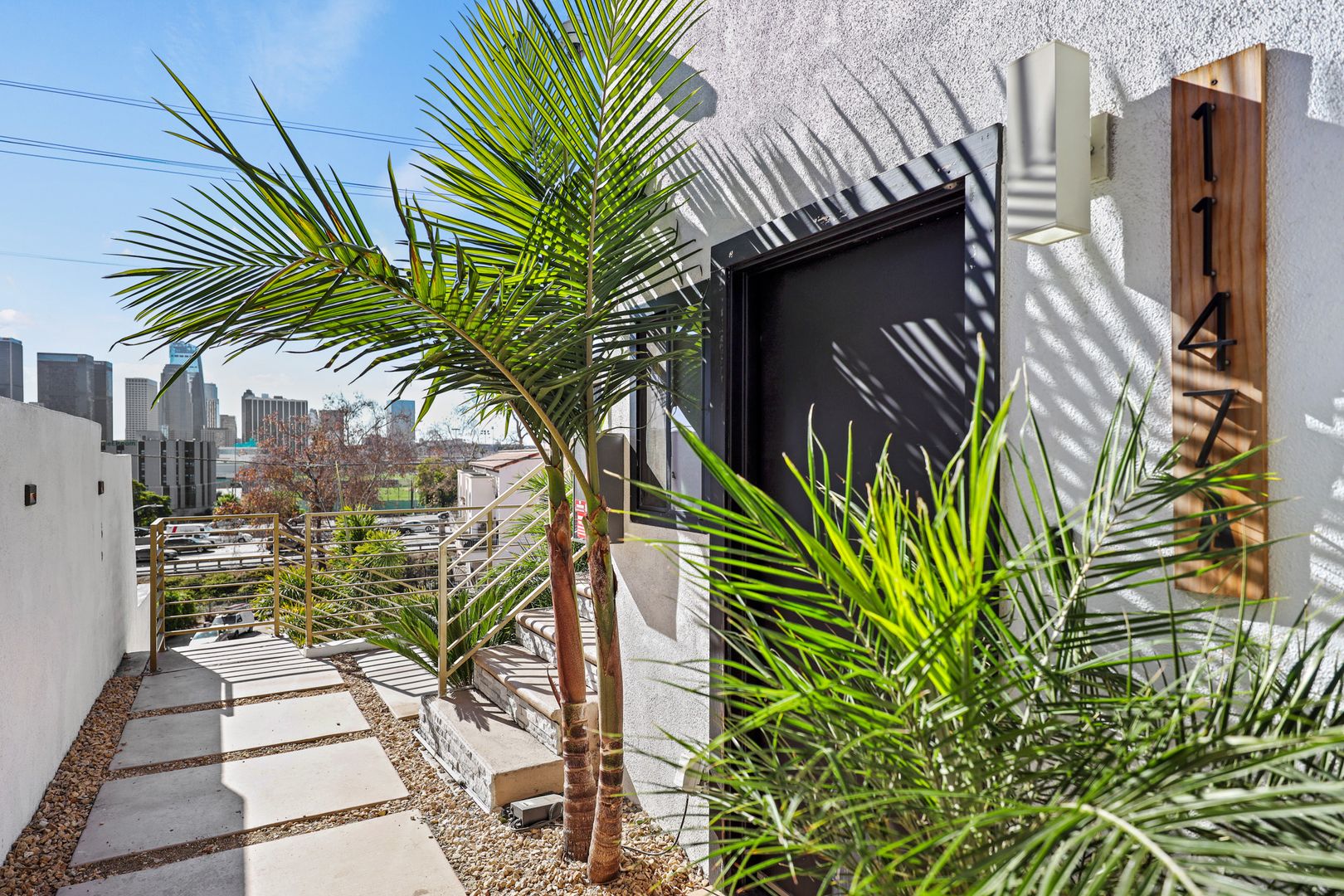 The apartment homes are separately-metered, fully parked with seven onsite parking spaces and have central air conditioning. Creatively designed by a renowned LA designer, these 1970 vintage luxury rental homes feature keyless entry door locks to spacious one and two-bedroom floor plans with newly upgraded kitchen and bathrooms. The kitchen boasts sparkling white stone quartz countertops with brand new self-closing enhanced cabinetry and high-end stainless-steel Whirlpool refrigerators with matching gas cooktop with oven and microwave. Each rental home has porcelain tiled bathtubs and glass shower doors with oversize vanity mirror. Each rental home also includes central A/C cooling and heating with recessed lights with luxury style remote control blinds and distressed wood plank floors. Washer and dryer included in each unit (except for 1147A).