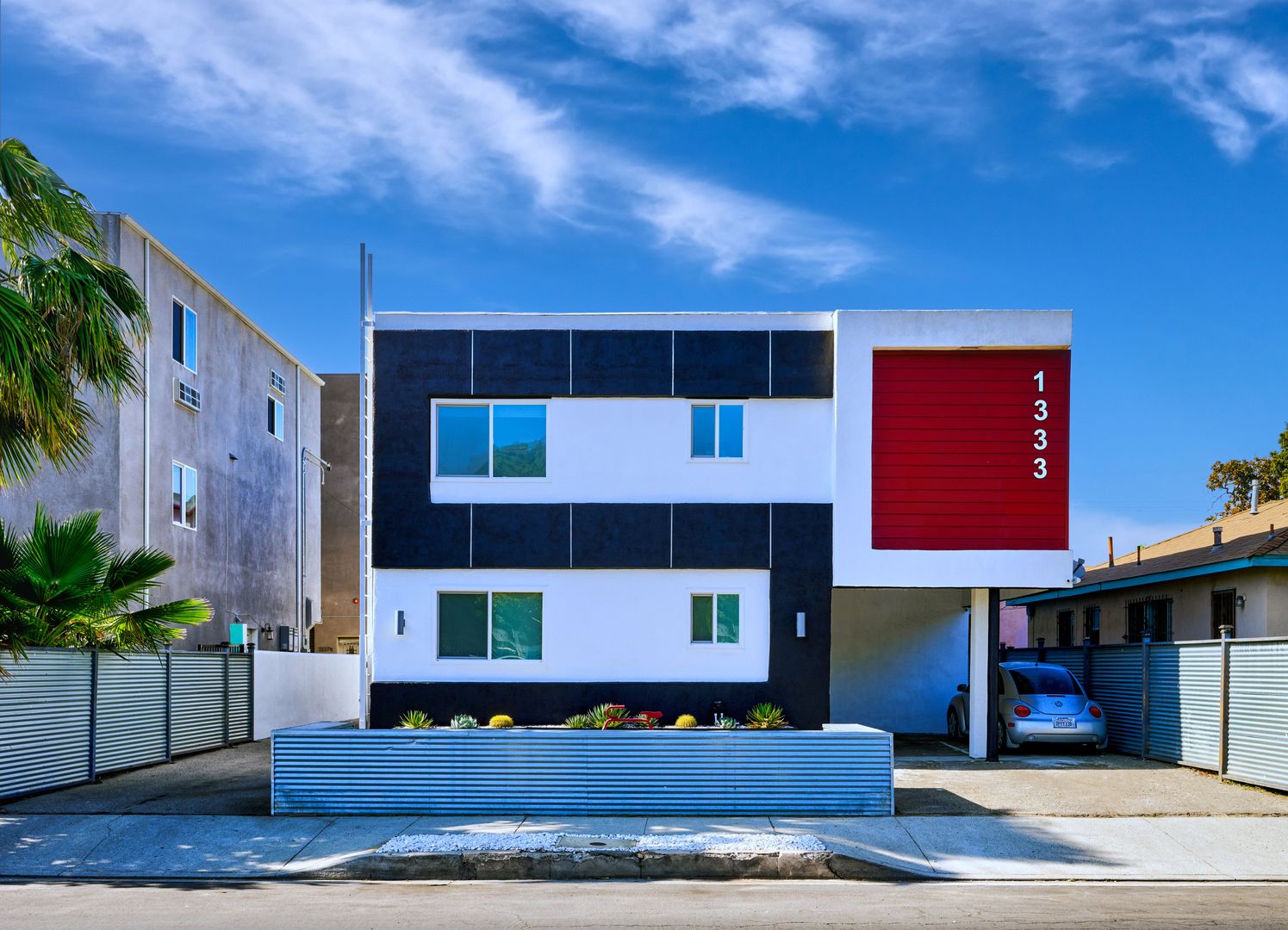 Inspired by midcentury Modernism architecture, these newly renovated rental homes are just minutes to the prestigious University of Southern California (USC) and thriving Downtown Los Angeles. 1333 W 36th Place, located in the heart of central Los Angeles, features an eight-unit, two-story low-rise building with enhanced modern architecture and a gray cement shade base and accents of earth tone colors. The property even has the “SC” logo design on the front façade!