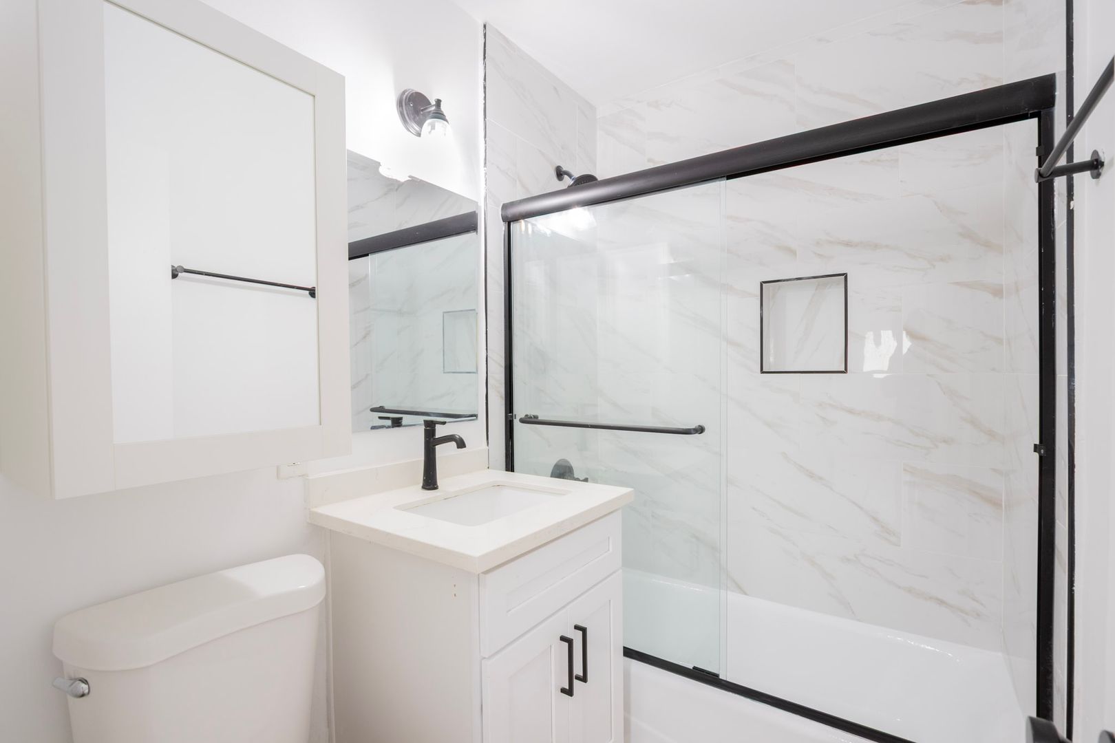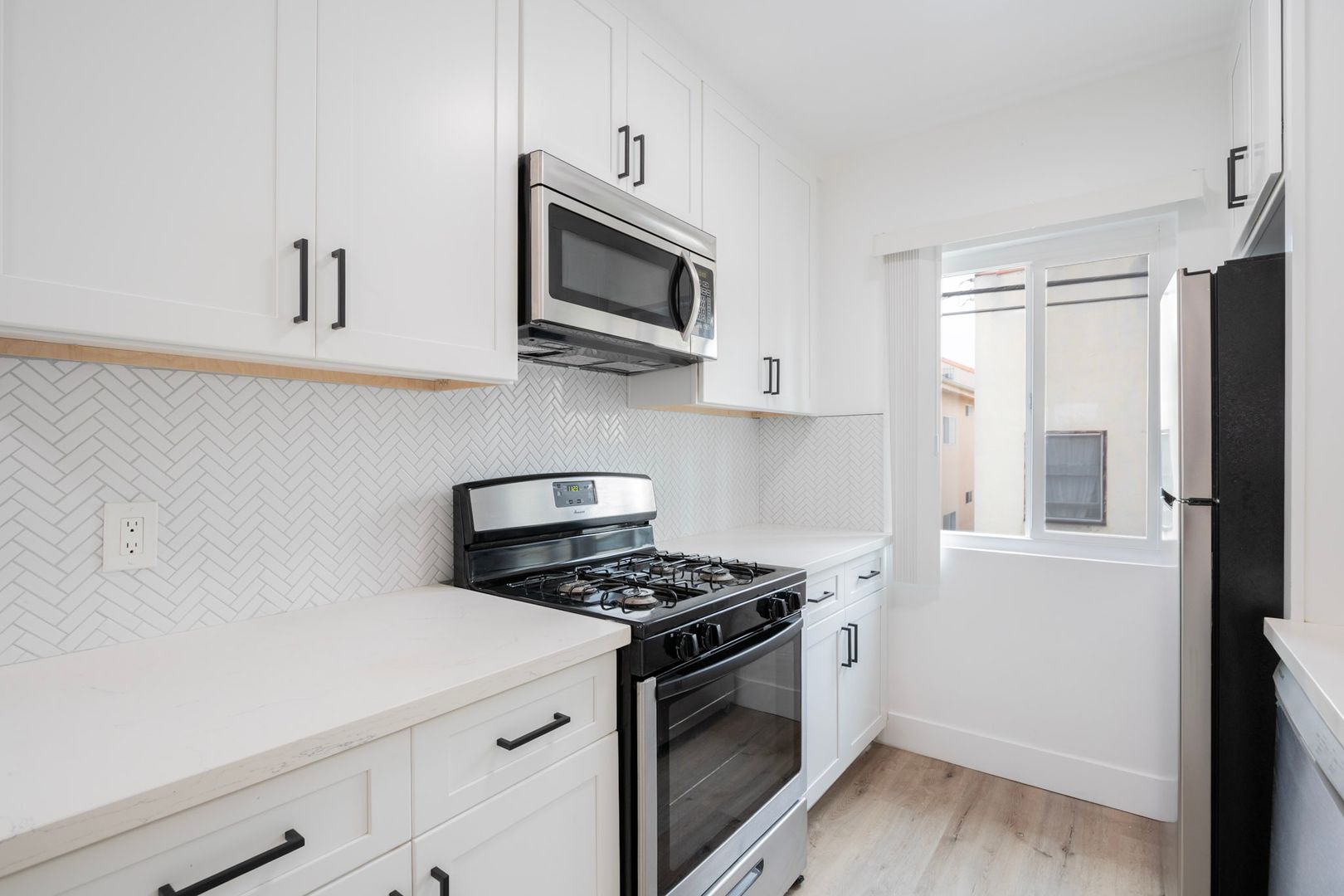 Step inside to discover a thoughtfully designed open layout featuring new flooring, designer lighting, and abundant natural light. The contemporary kitchen boasts black-finish stainless steel appliances—including stove, microwave, dishwasher, and refrigerator—along with sleek cabinetry and quartz countertops.