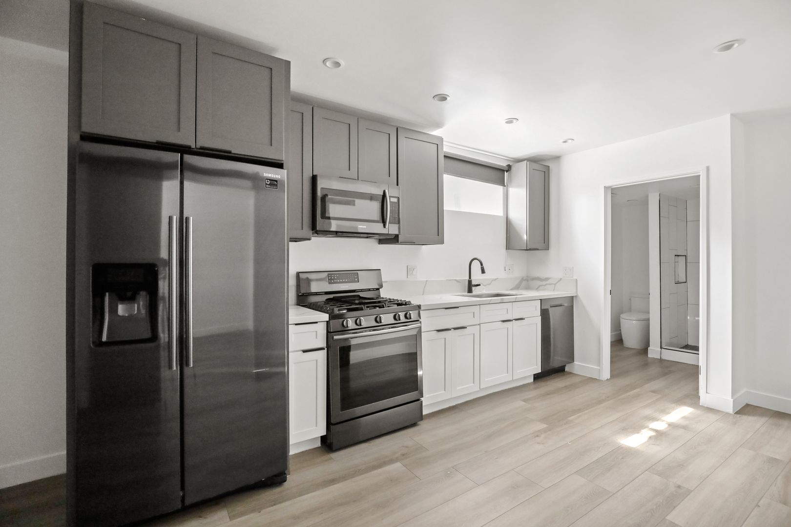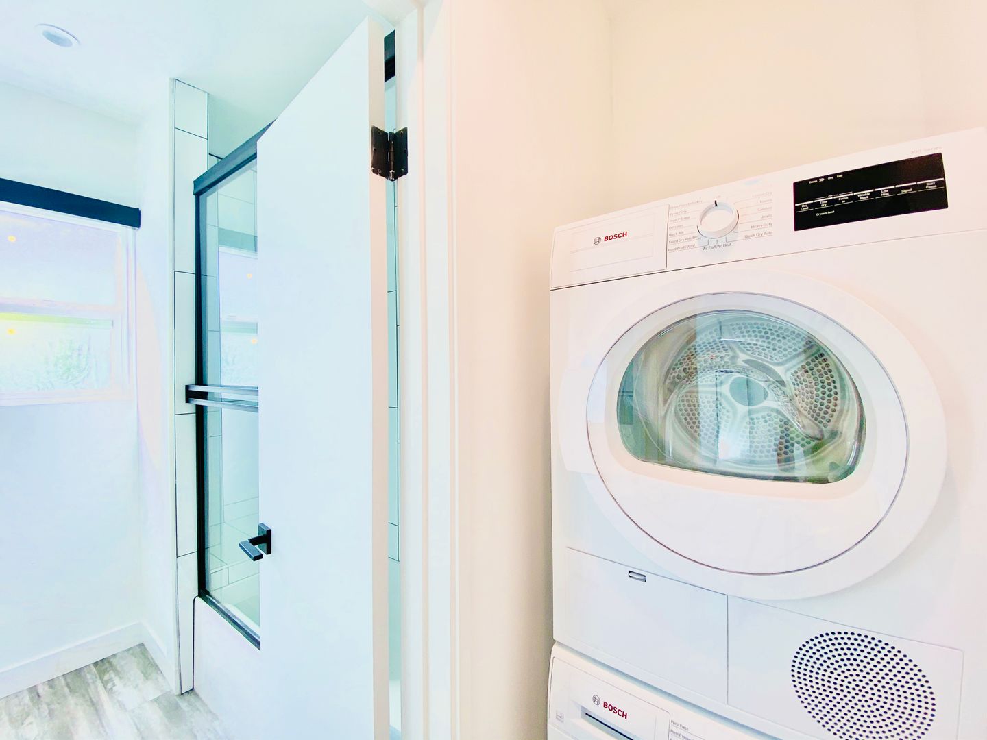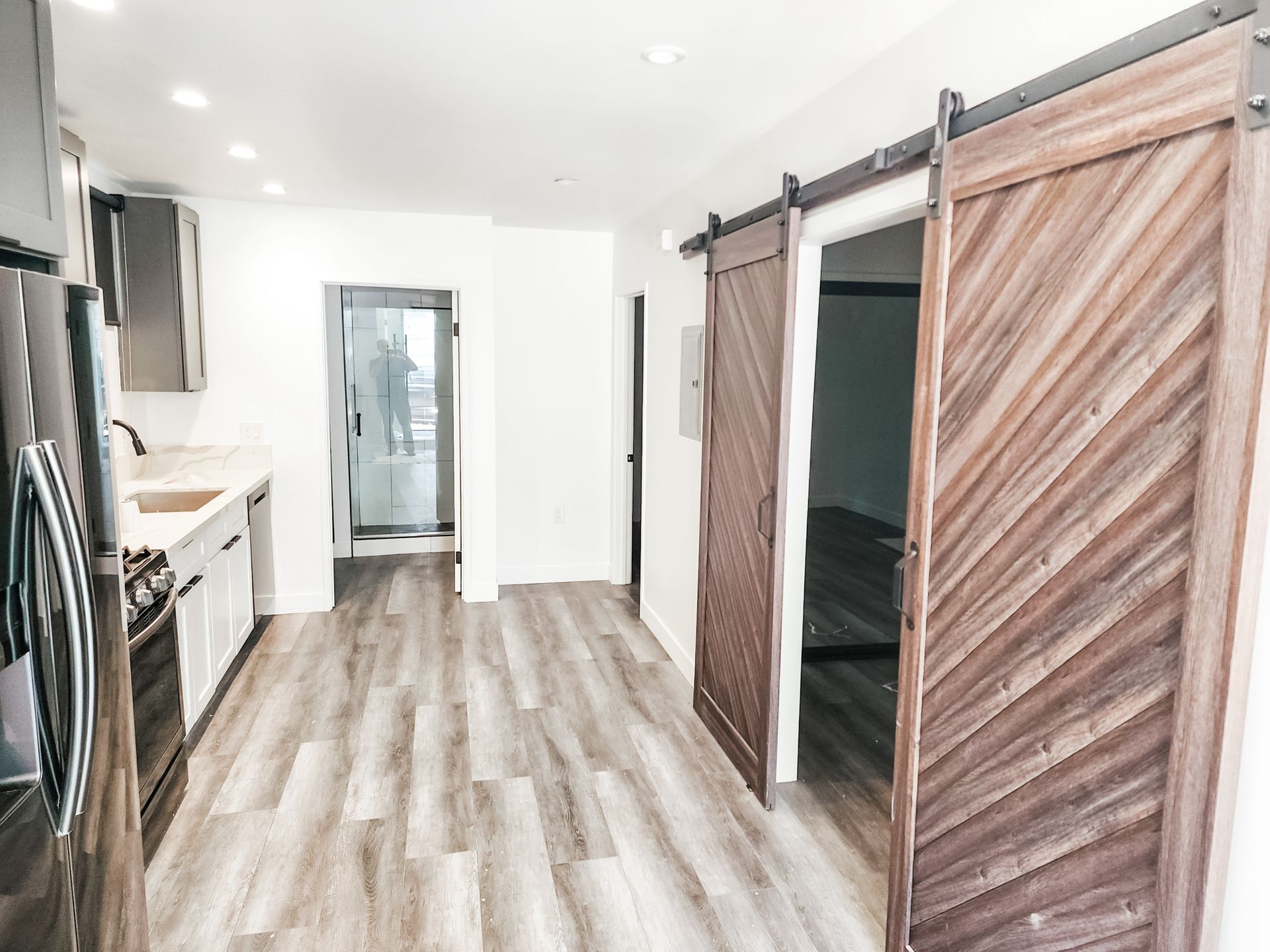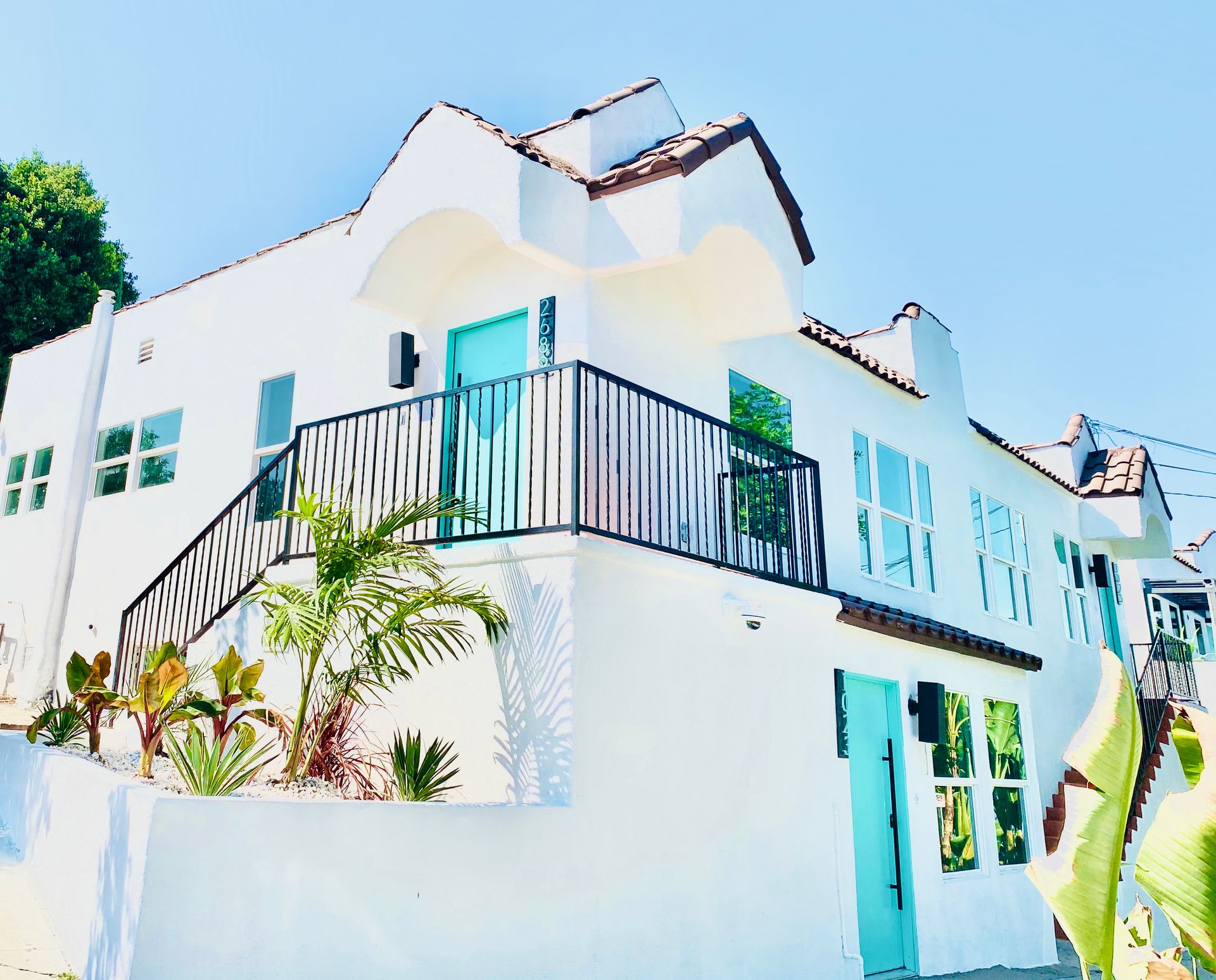 Carefully restored and designed by a renowned LA designer, these 1920s modern rental homes feature keyless entry door locks to spacious two-bedroom floor plans with new kitchens and bathrooms. The kitchen boasts sparkling white stone quartz countertops with brand new self-closing cabinetry and high-end stainless-steel refrigerators with matching gas cooktop with oven and microwave. iRing doorbells with a smart home video security camera are also included. Bathrooms feature porcelain tiled bath tubs and glass shower doors. Each rental home also includes central A/C cooling and heating with recessed lights with luxury style cellular shade window blinds, distressed wood plank floors, and dual sliding barn doors.