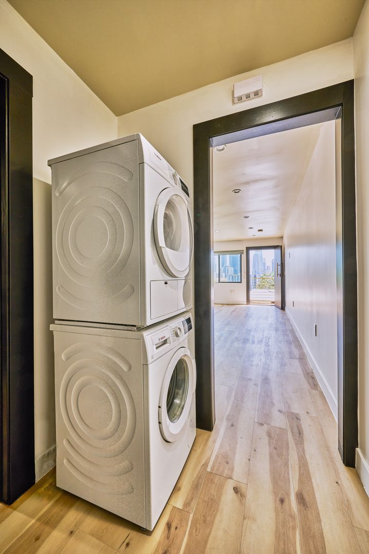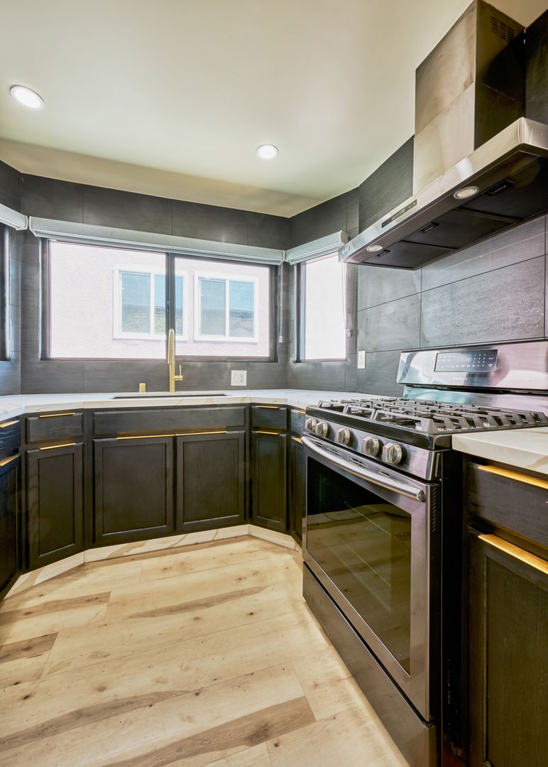 The apartment homes are separately-metered, fully parked with seven onsite parking spaces and have central air conditioning. Creatively designed by a renowned LA designer, these 1970 vintage luxury rental homes feature keyless entry door locks to spacious one and two-bedroom floor plans with newly upgraded kitchen and bathrooms. The kitchen boasts sparkling white stone quartz countertops with brand new self-closing enhanced cabinetry and high-end stainless-steel Whirlpool refrigerators with matching gas cooktop with oven and microwave. Each rental home has porcelain tiled bathtubs and glass shower doors with oversize vanity mirror. Each rental home also includes central A/C cooling and heating with recessed lights with luxury style remote control blinds and distressed wood plank floors. Washer and dryer included in each unit (except for 1147A).