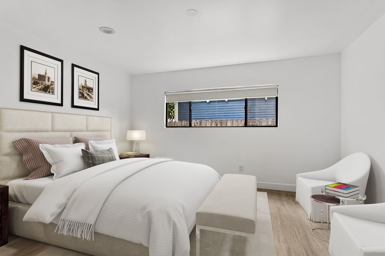 Carefully restored and designed by a renowned LA designer, these 1960s modern luxury rental homes feature keyless entry door locks to spacious one and two-bedroom floor plans with newly renovated kitchen and bathrooms. The kitchen boasts sparkling white stone quartz countertops with brand new self closing cabinetry and high-end stainless-steel refrigerators with matching gas cooktop with oven and microwave. iRing doorbells with a smart home video security camera are also included as well as a stackable washer and dryer. Bathrooms feature porcelain tiled bath tubs and glass shower doors. Each rental home also includes central A/C cooling and heating with recessed lights with luxury style cellular shade window blinds and distressed wood plank floors.