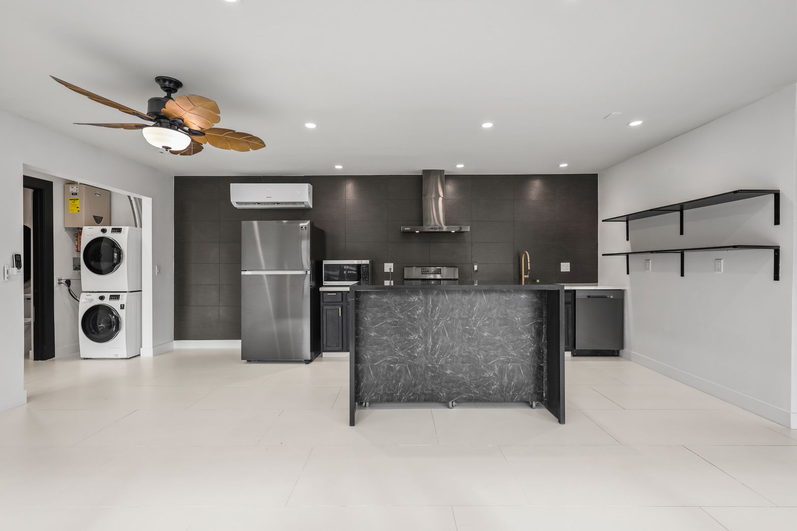 | KITCHEN | - Modern Designer Cabinetry - Quartz Countertops - Stainless-Steel Appliances - Refrigerator - Range w/ Oven - Microwave - Open Kitchen Space Layout