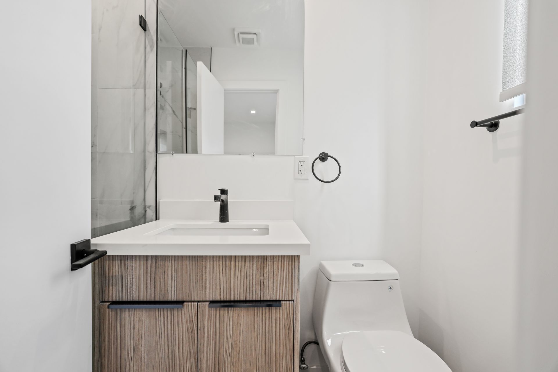 | BATH | - Tiled Shower and Bath - Glass Shower Doors - Oversized Vanity Mirror
