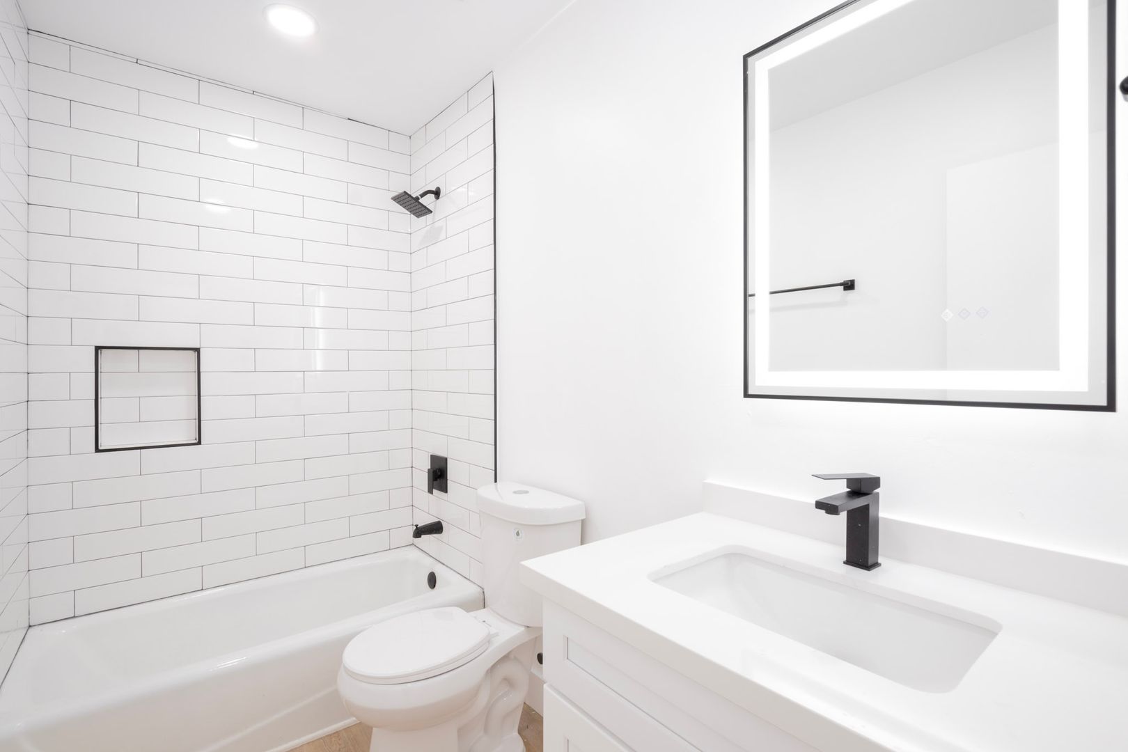 Step inside to discover a thoughtfully designed open layout featuring new flooring, designer lighting, and abundant natural light. The contemporary kitchen boasts black-finish stainless steel appliances—including stove, microwave, dishwasher, and refrigerator—along with sleek cabinetry and quartz countertops.