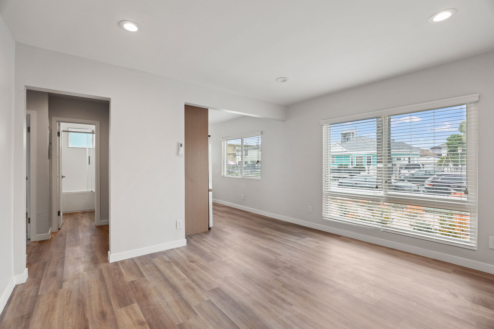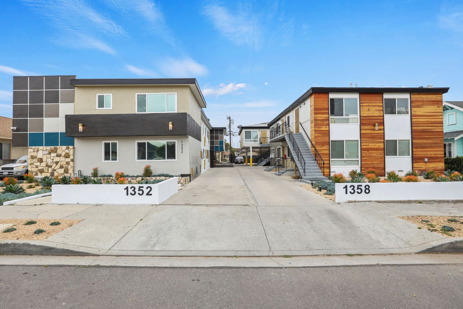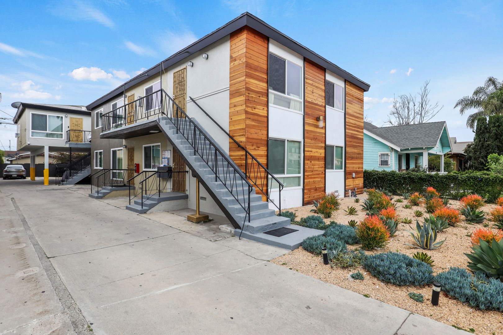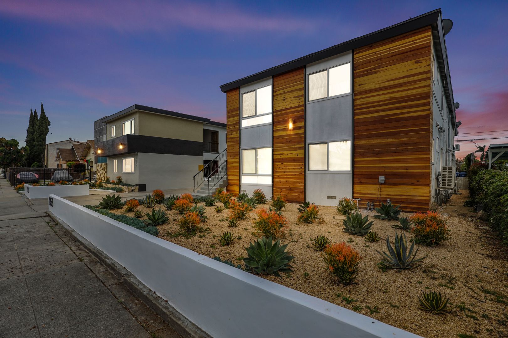 Inspired by midcentury Modernism architecture, these newly renovated rental homes are just minutes to the prestigious University of Southern California (USC) and thriving Downtown Los Angeles. 1358 W 36th Street, located in the heart of central Los Angeles, features a seven-unit, two-story low-rise building with enhanced modern architecture and a gray cement shade base and accents of earth tone colors.