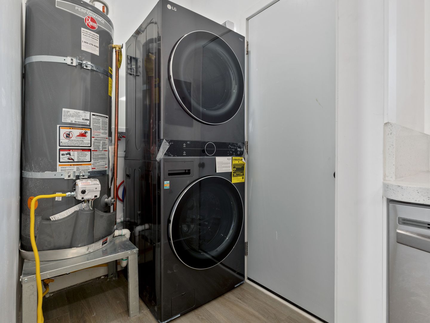 Carefully restored and designed by a renowned LA designer, these 1920s vintage luxury rental homes feature keyless entry door locks to spacious one bedroom and two-bedroom floor plans with arched entry ways to newly renovated kitchen and bathrooms. The kitchen boasts sparkling white stone quartz countertops with brand new self-closing cabinetry and high-end Samsung stainless-steel refrigerators with matching gas cooktop with oven and microwave. Stacked washer and dryers included inside each rental home with porcelain tiled bath tubs, and glass shower doors and separate guest bathrooms. Each rental homes also includes central A/C cooling and heating with recessed lights with luxury style remote control blinds and distressed wood plank floors.